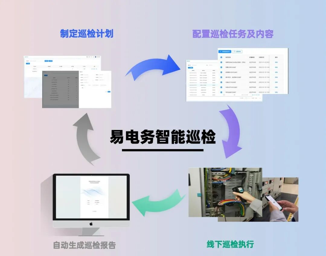 智能运维是由线上和线下相结合的服务模式。易电务已构建行业标杆级的智能配电监控系统及线上运维能力,通过高频数据采析、AI智能识别与故障诊断技术,为配电系统安全运行提供精准的“技防”屏障。与此同时,线下巡检服务作为“人防”体系的坚实支撑,也是不可或缺的部分,智能巡检依托数字化检测工具与资深专业团队,深入设备核心层面对隐患进行溯源排查。线上实时监测与线下深度巡检的结合机制,形成“技防”与“人防”的无缝协同,为用户的用电安全构建起立体化保障体系,确保电力资产全生命周期的稳定运行。